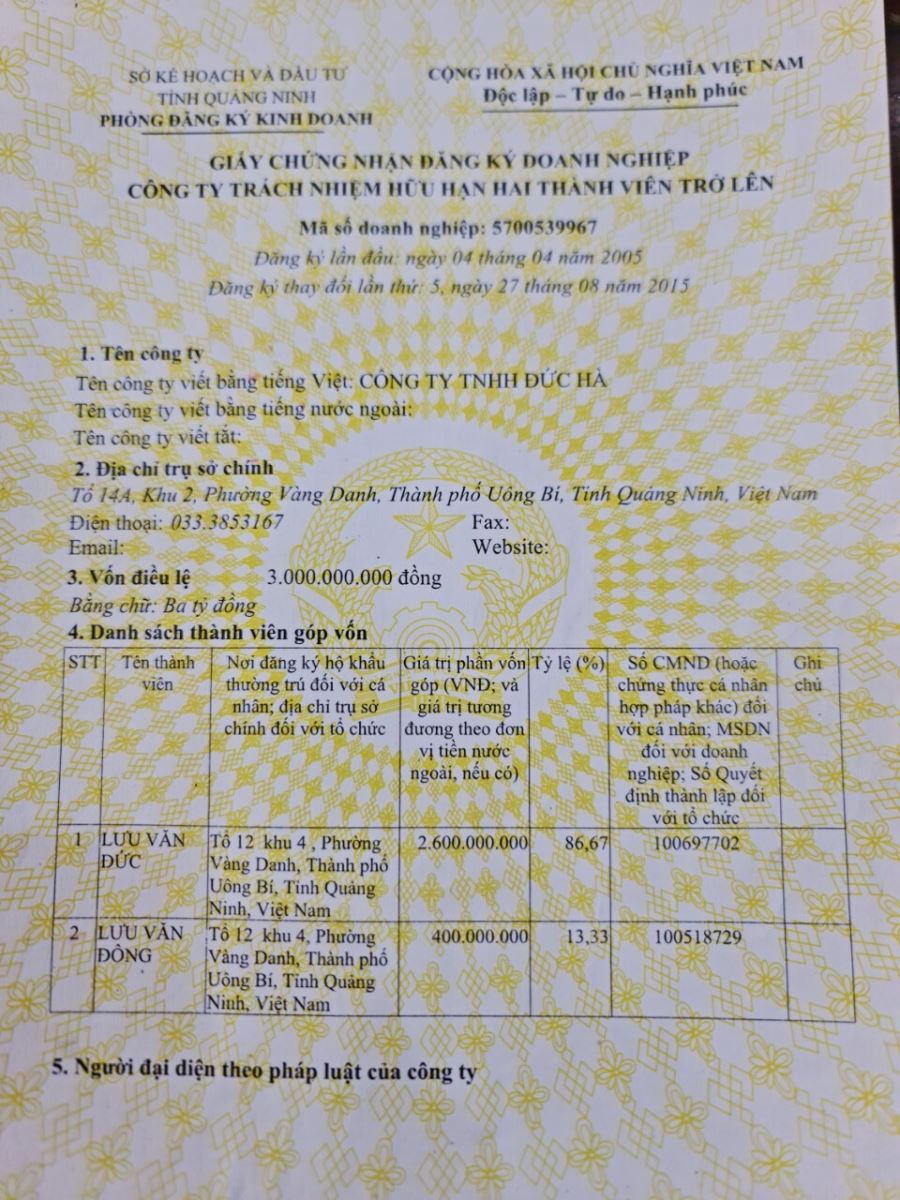 Địa chỉ: Tổ 14A, khu 2, phường Vàng Danh, thành phố Uông Bí, tỉnh Quảng Ninh