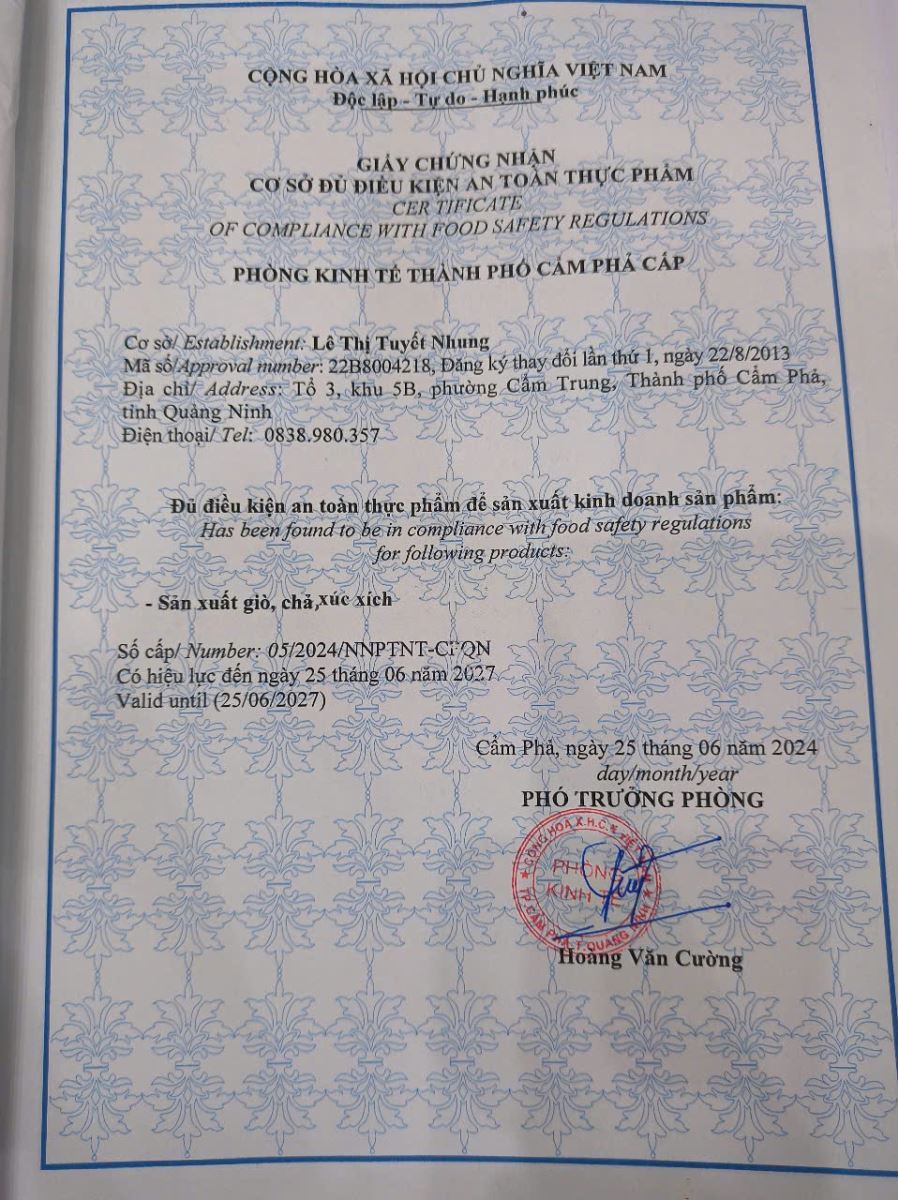 Tên đơn vị/nhà sản xuất: Cơ sở Lê Thị Tuyết Nhung