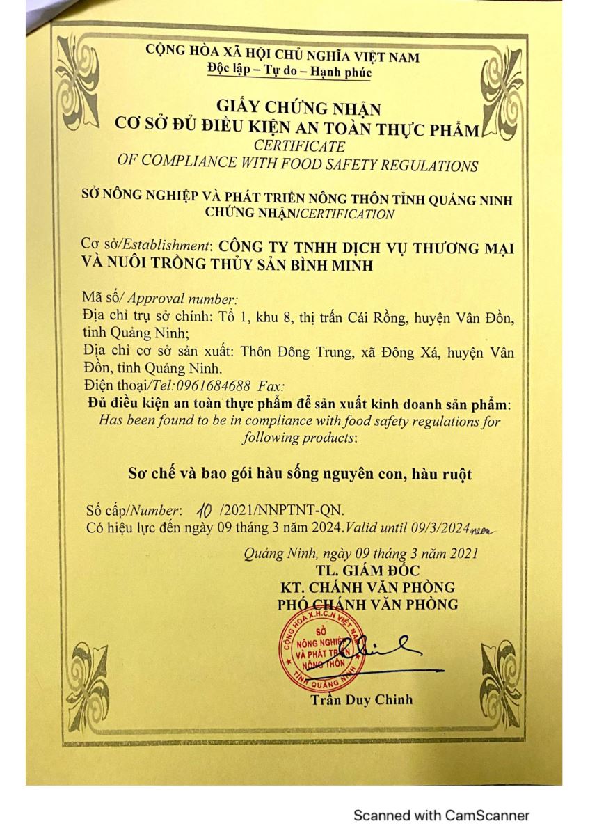 Tên đơn vị/nhà sản xuất: Công ty TNHH dịch vụ thương mại và nuôi trồng thủy sản Bình Minh