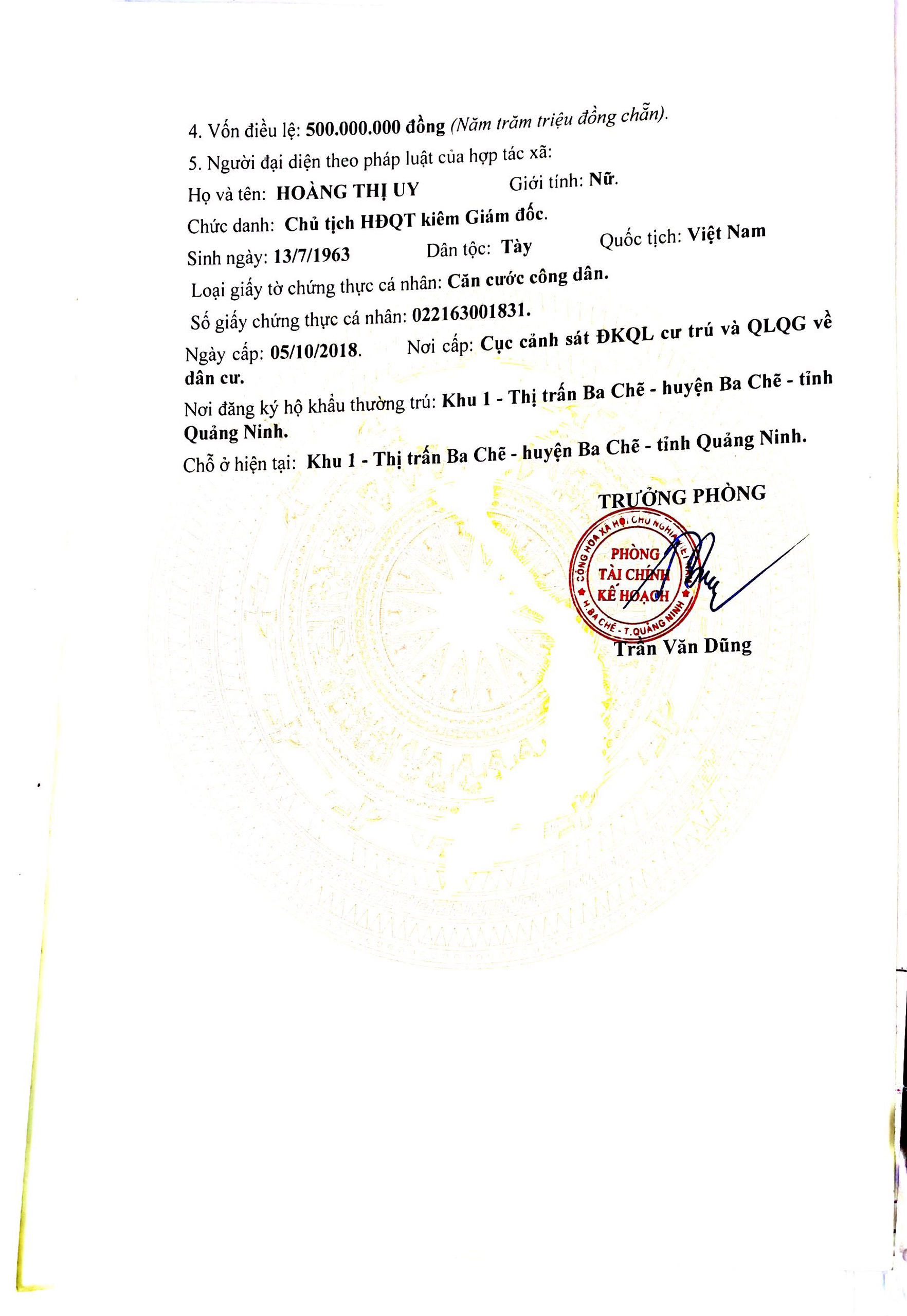 Địa chỉ: Tổ 3, khu 1, thị trấn Ba Chẽ, huyện Ba Chẽ, tỉnh Quảng Ninh