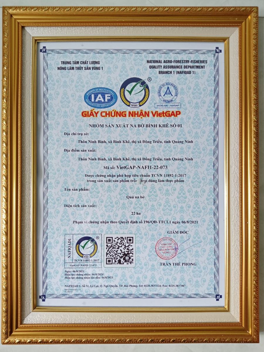 Tên đơn vị/nhà sản xuất: Tổ sản xuất na bở số 01 xã Bình Khê