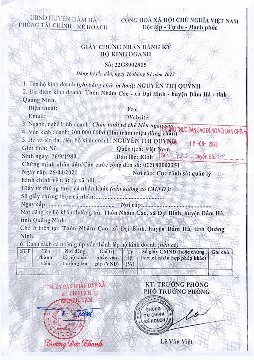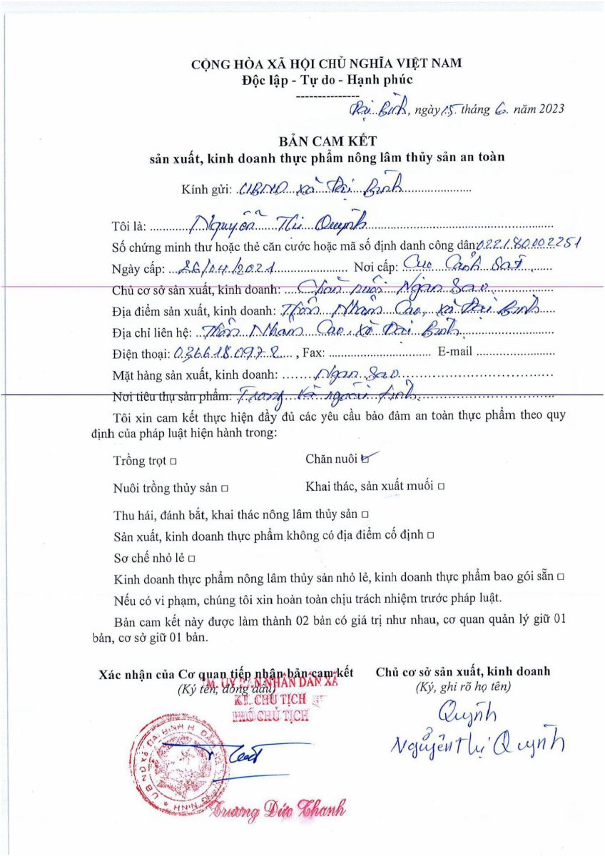 Tên đơn vị/nhà sản xuất: Cơ sở Nguyễn Thị Quỳnh