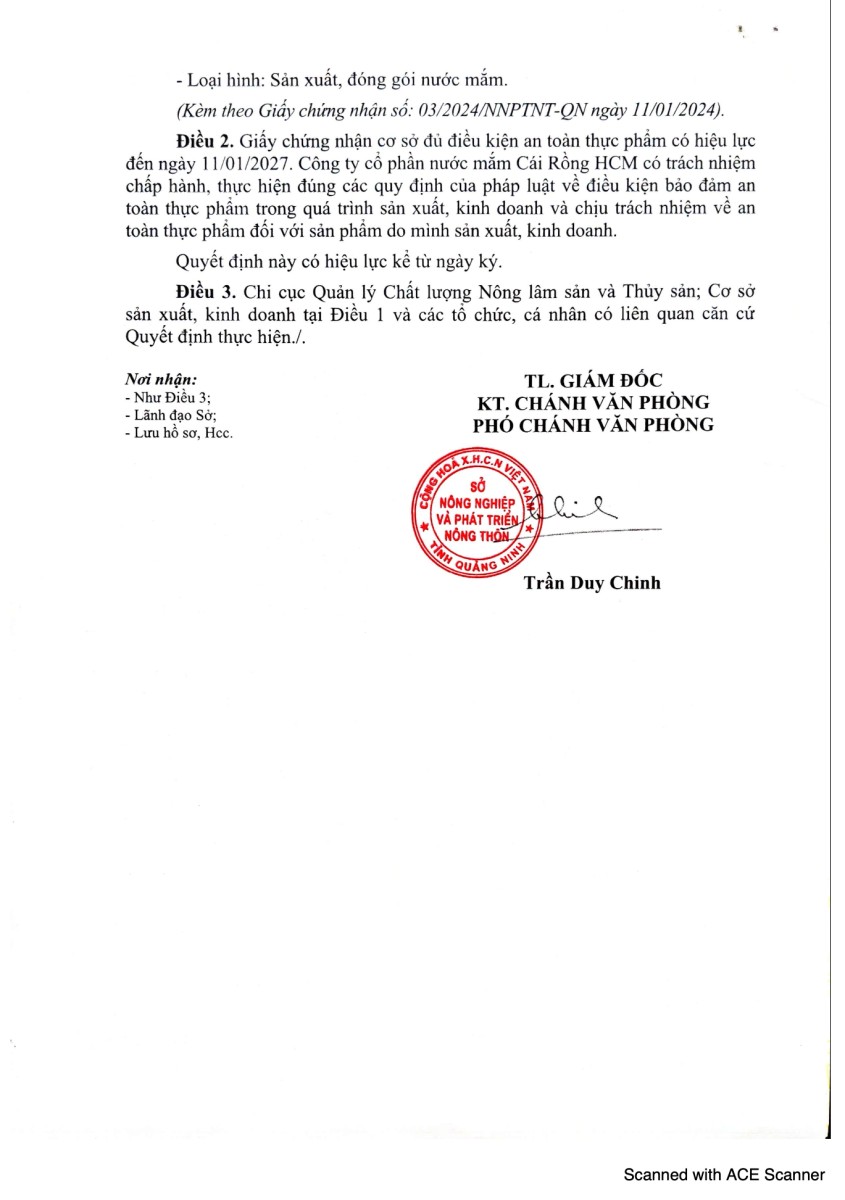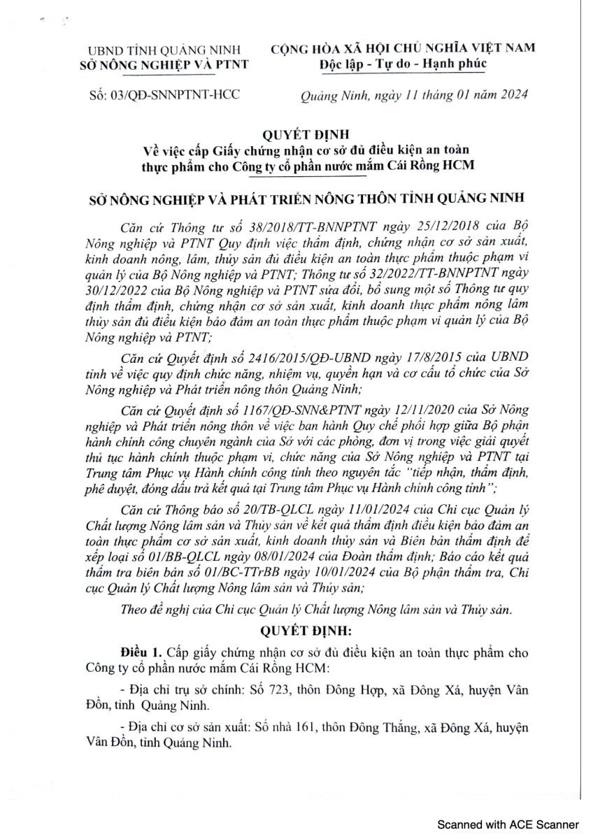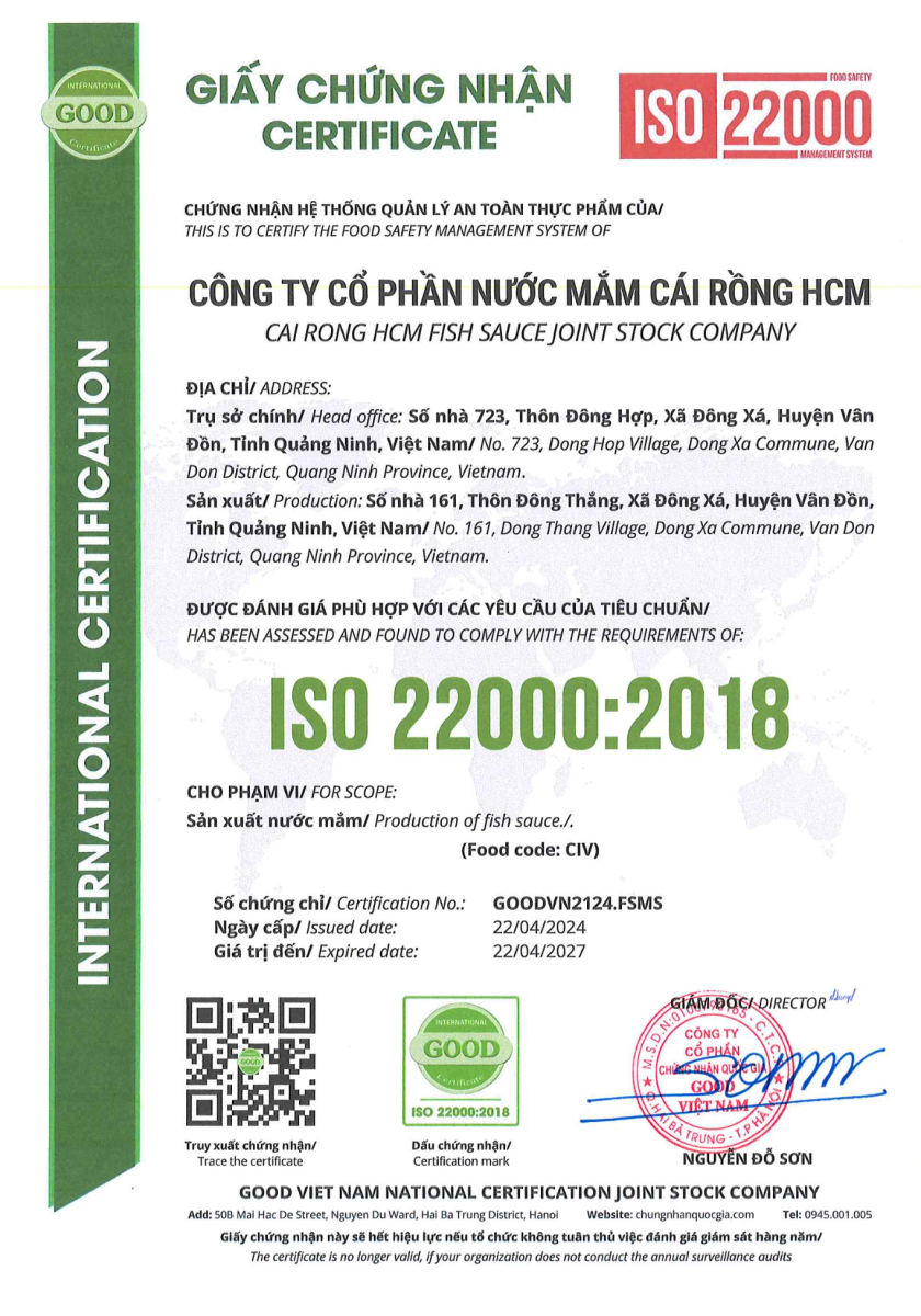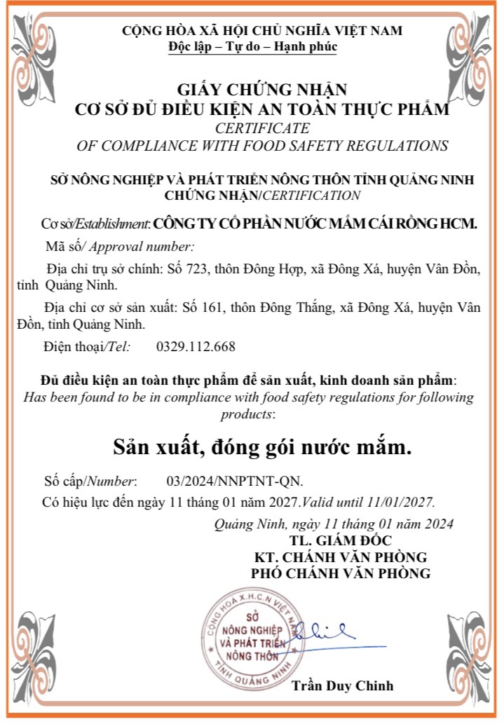 Tên đơn vị/nhà sản xuất: Công ty cổ phần nước mắm Cái Rồng HCM