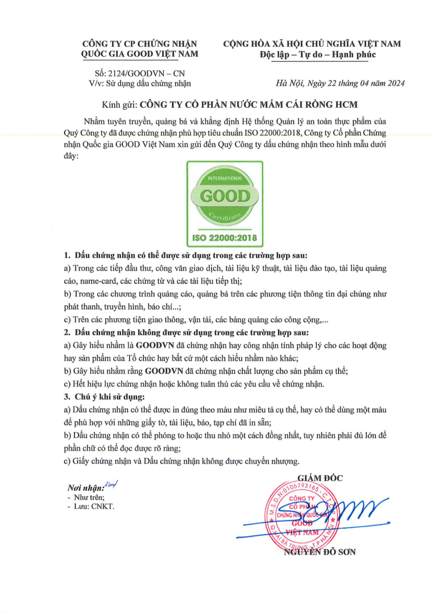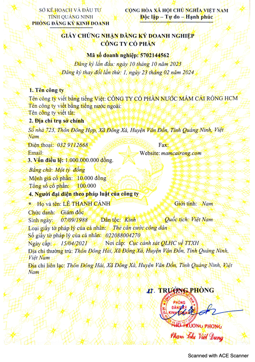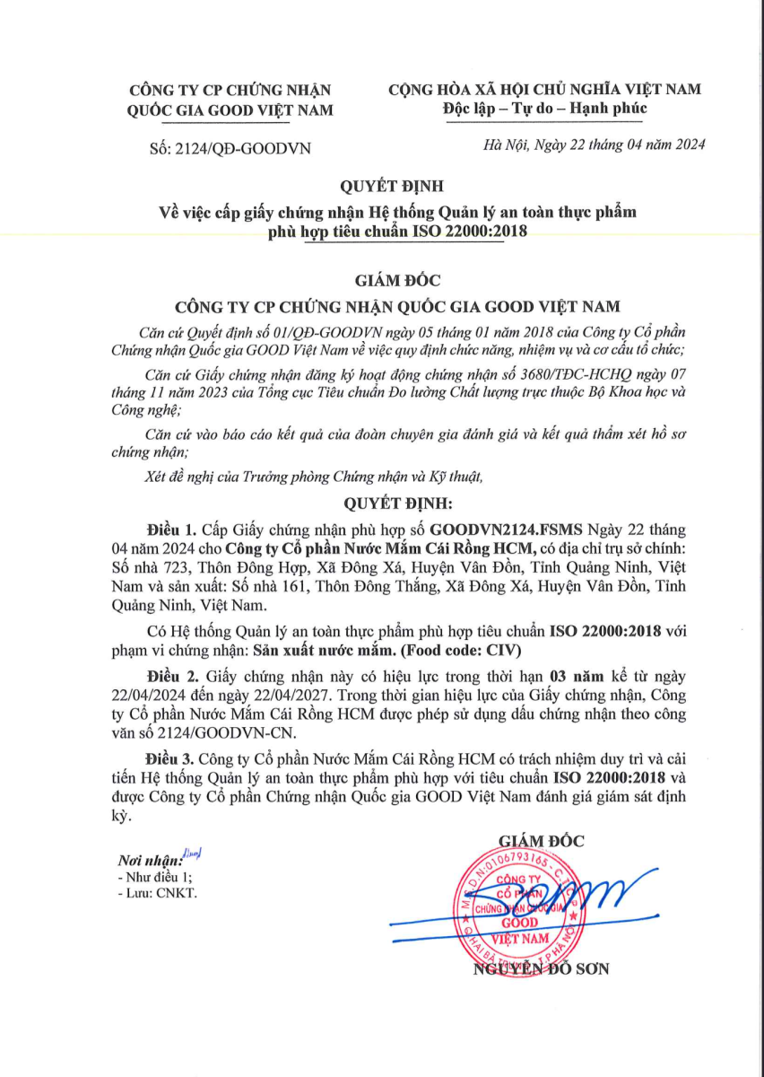 Tên đơn vị/nhà sản xuất: Công ty cổ phần nước mắm Cái Rồng HCM
