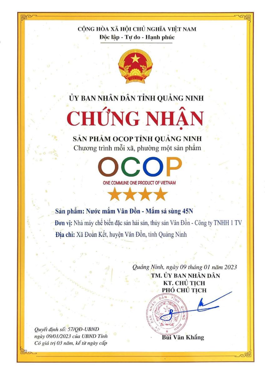 Tên đơn vị/nhà sản xuất: Nhà máy chế biến đặc sản hải sản, thủy sản Vân Đồn