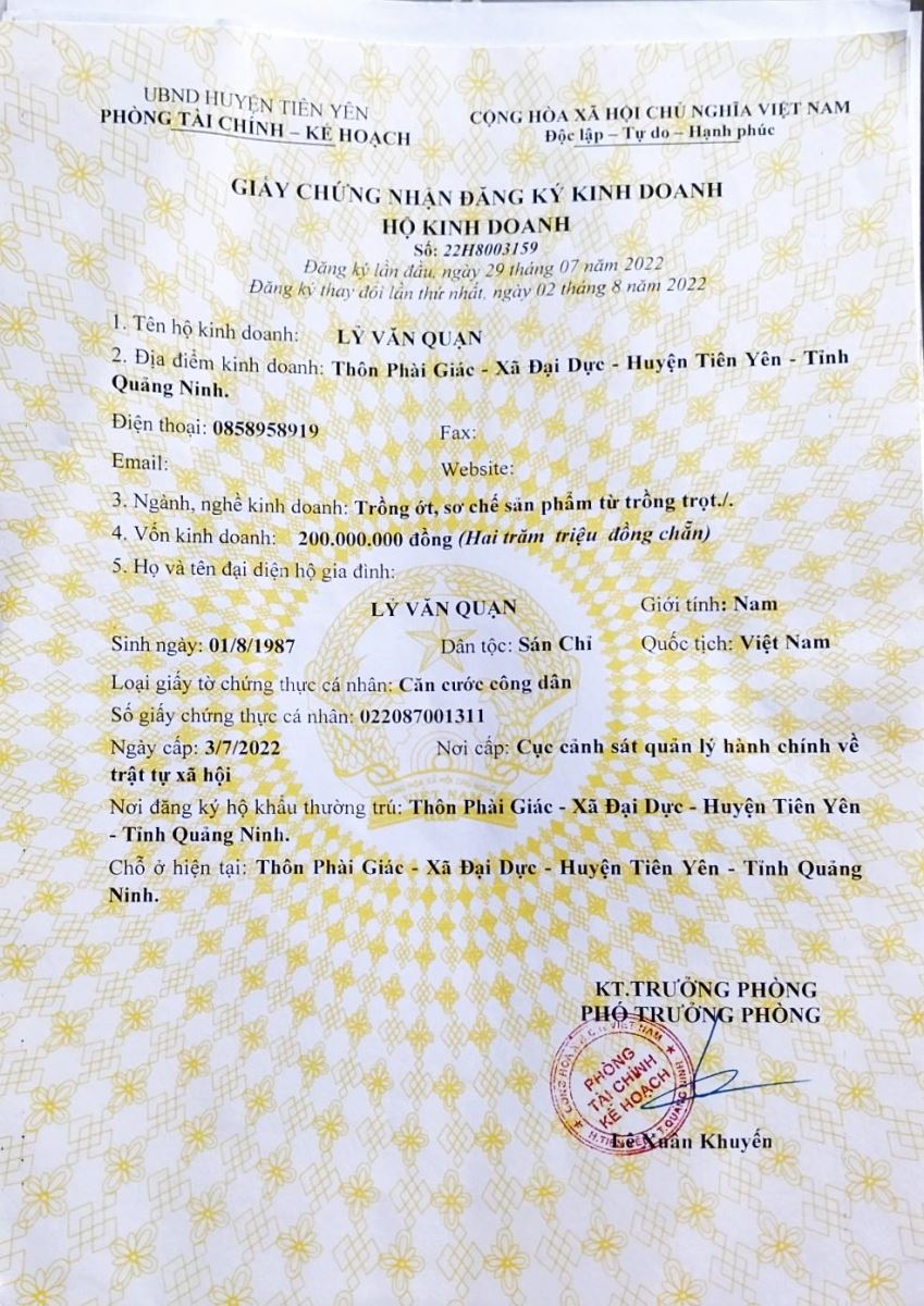Tên đơn vị/nhà sản xuất: Lỷ Văn Quạn