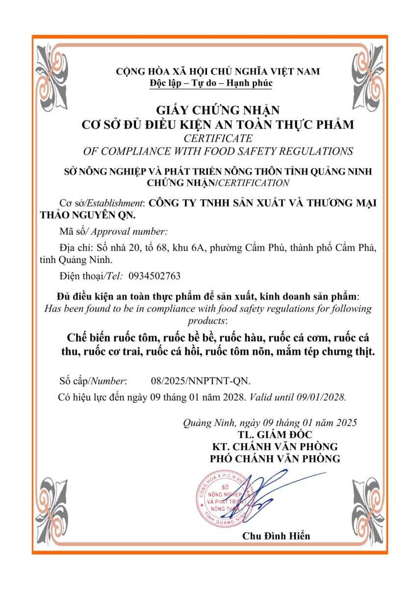 Tên đơn vị/nhà sản xuất: Công ty TNHH sản xuất và thương mại Thảo Nguyên QN