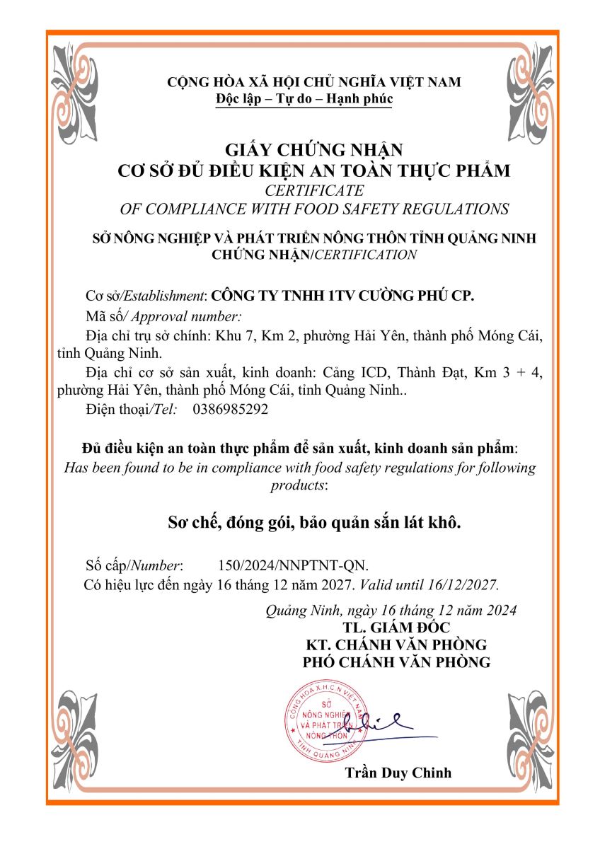 Tên đơn vị/nhà sản xuất: Công ty TNHH 1TV Cường Phú CP