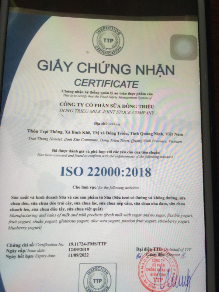 Công ty cổ phần sữa Đông Triều xin kính chào Quý khách, cảm ơn Quý khách đã sử dụng sản phẩm của chúng tôi!
