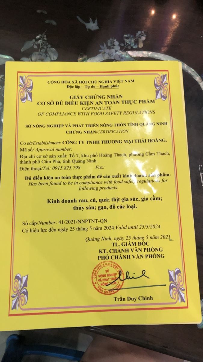 Tên đơn vị/nhà sản xuất: Công ty TNHH Thương mại Thái Hoàng