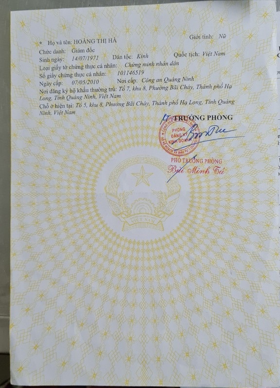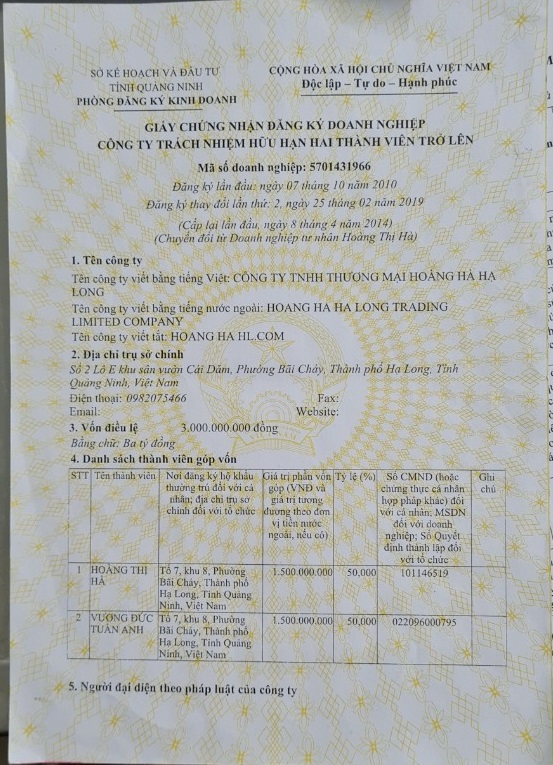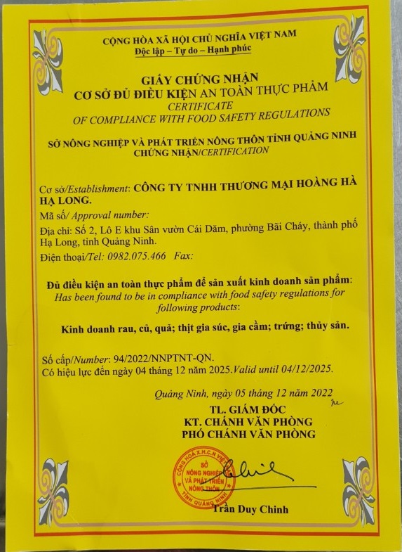Tên đơn vị/nhà sản xuất: Công ty TNHH thương mại Hoàng Hà Hạ Long