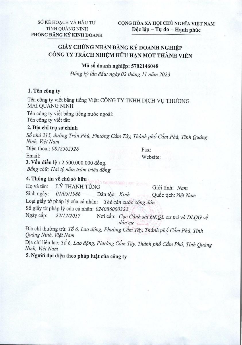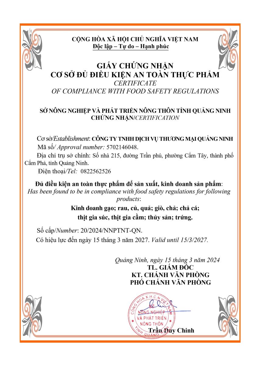 Tên đơn vị/nhà sản xuất: Công ty TNHH dịch vụ thương mại Quảng Ninh