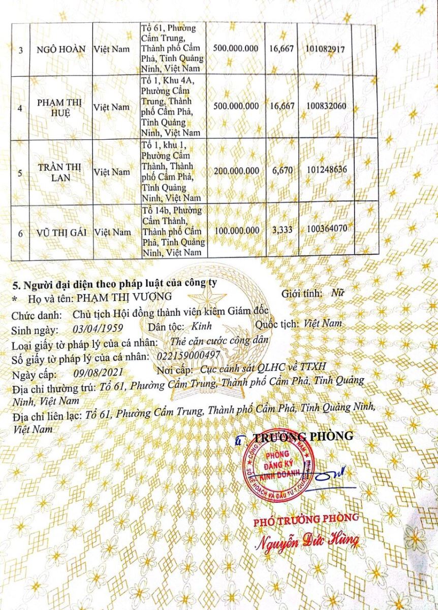 Địa chỉ: Tổ 6, khu 4, phường Cẩm Trung, thành phố Cẩm Phả, tỉnh Quảng Ninh