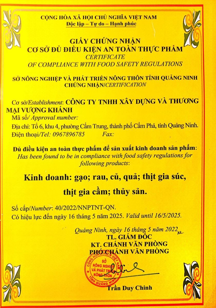 Tên đơn vị/nhà sản xuất: Công ty TNHH xây dựng và thương mại Vượng Khánh