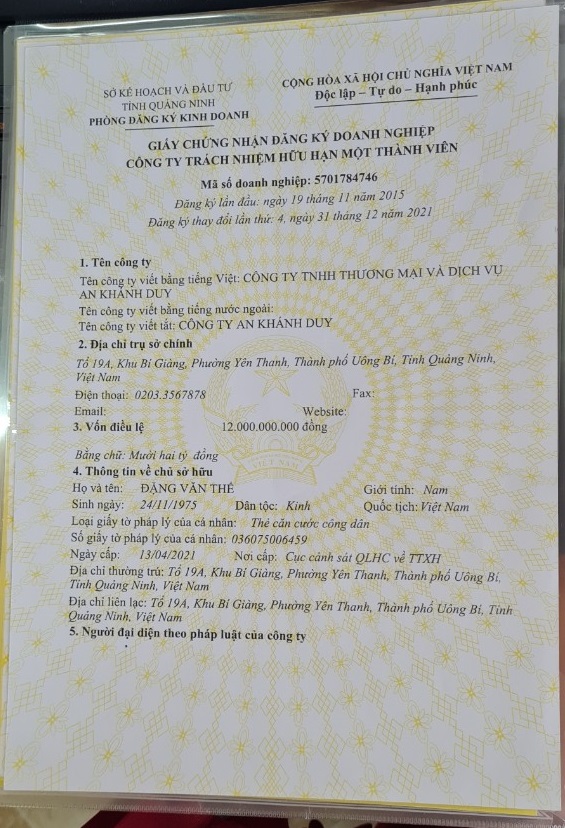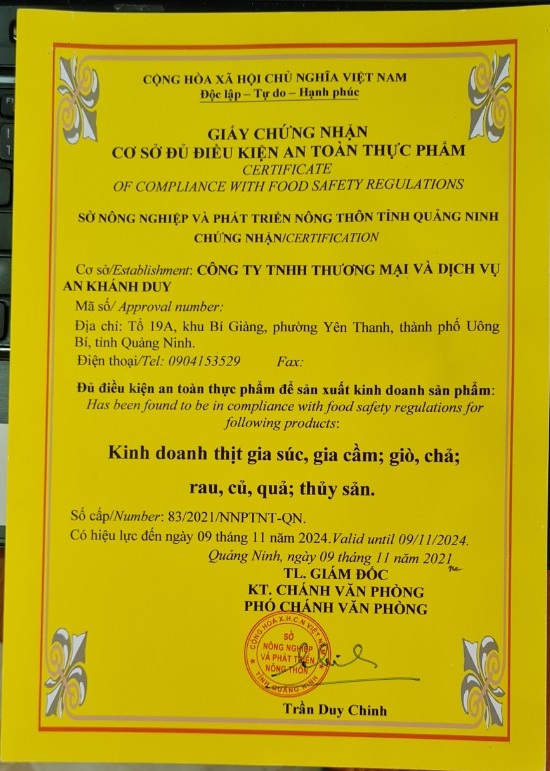 Tên đơn vị/nhà sản xuất: Công ty TNHH thương mại và dịch vụ An Khánh Duy