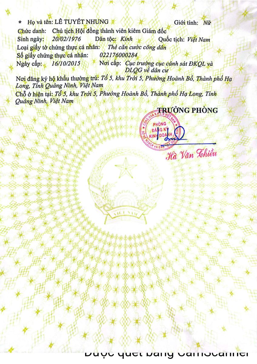 Địa chỉ: Số nhà 153, tổ 5, khu Trới 5, phường Hoành Bồ, thành phố Hạ Long
