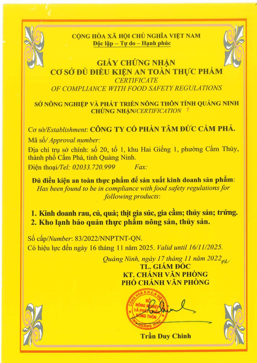 Tên đơn vị/nhà sản xuất: Công ty cổ phần Tâm Đức Cẩm Phả