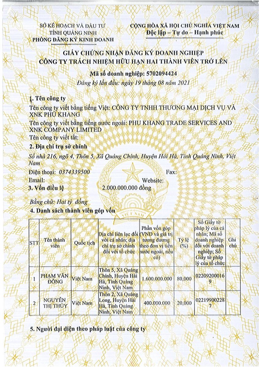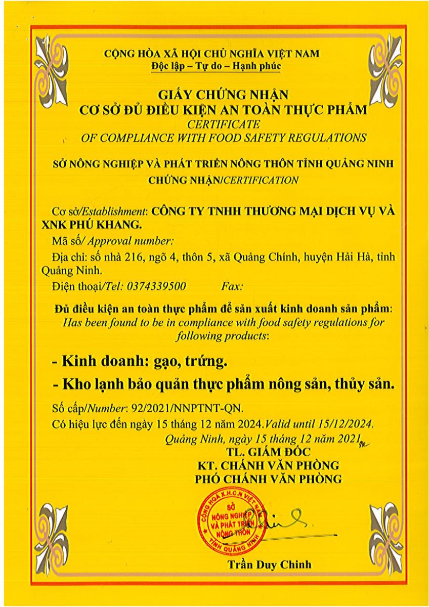 Tên đơn vị/nhà sản xuất: Công ty TNHH thương mại dịch vụ và XNK Phú Khang