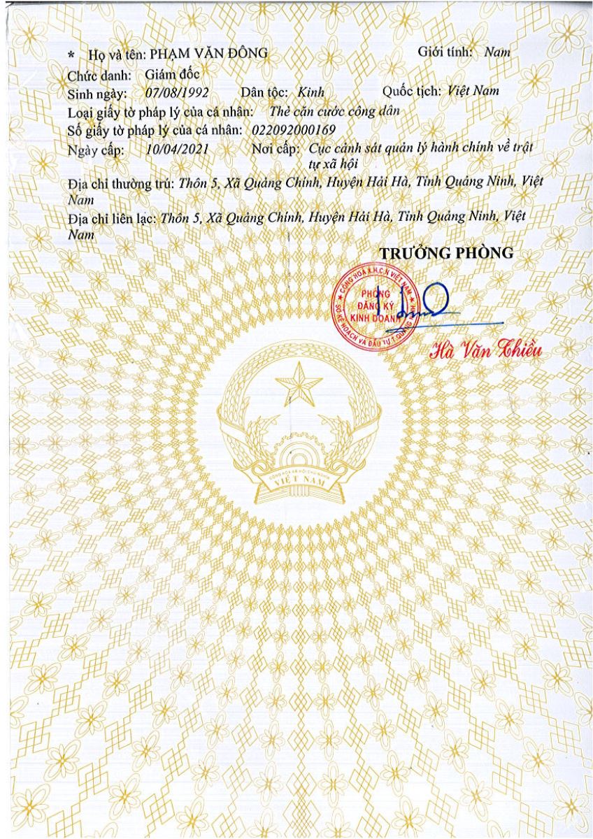 Địa chỉ: Số nhà 216, ngõ 4, thôn 5, xã Quảng Chính, huyện Hải Hà