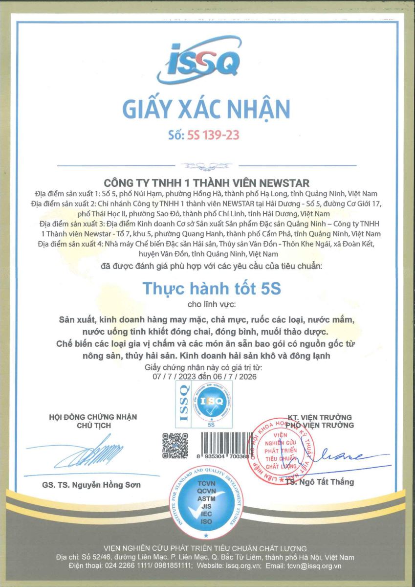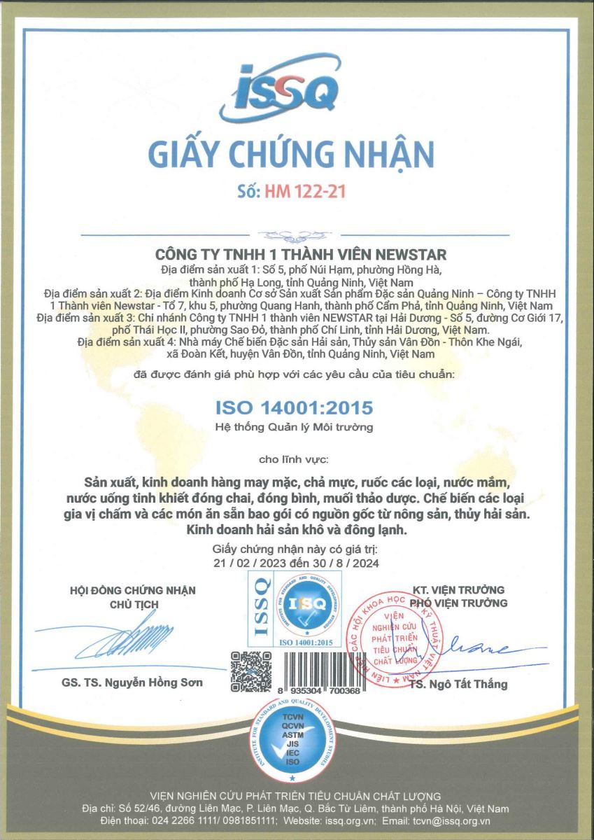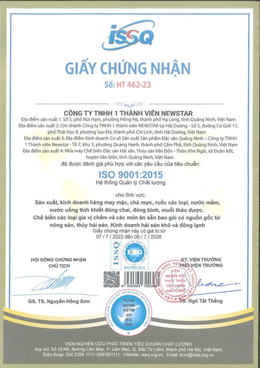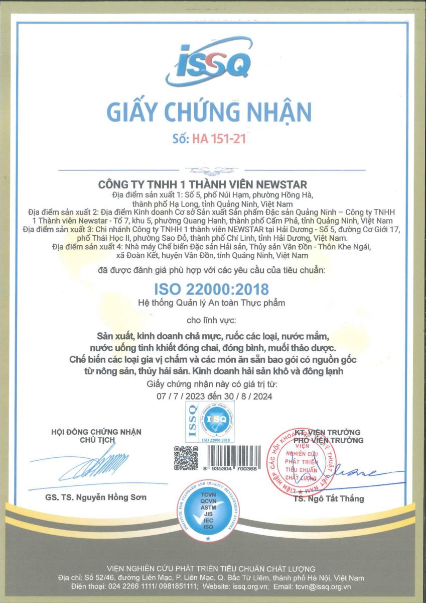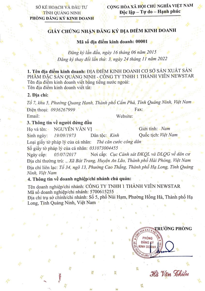 Tên đơn vị/nhà sản xuất: Địa điểm kinh doanh cơ sở sản xuất sản phẩm đặc sản Quảng Ninh - công ty TNHH 1 thành viên NewStar