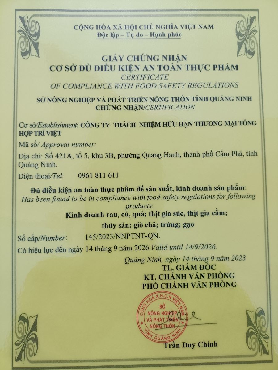 Tên đơn vị/nhà sản xuất: Công ty TNHH thương mại tổng hợp Trí Việt