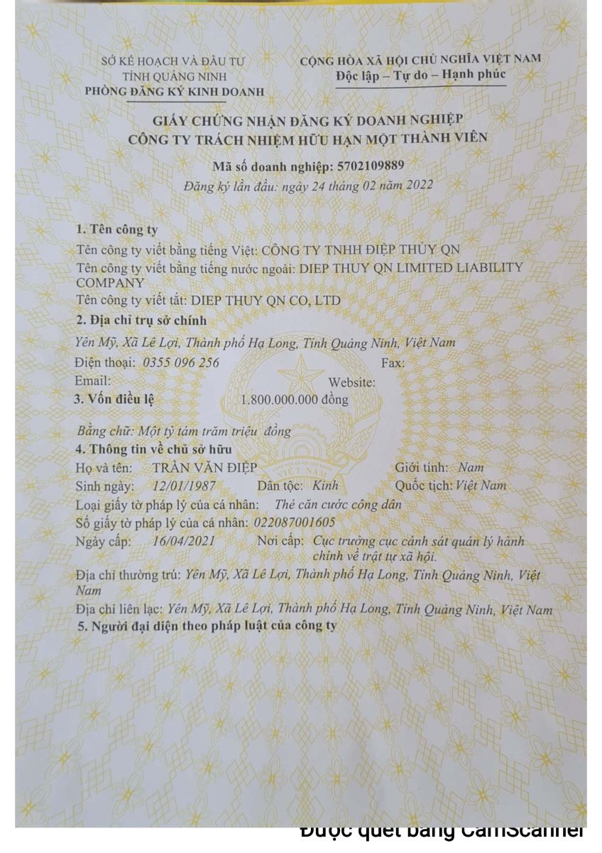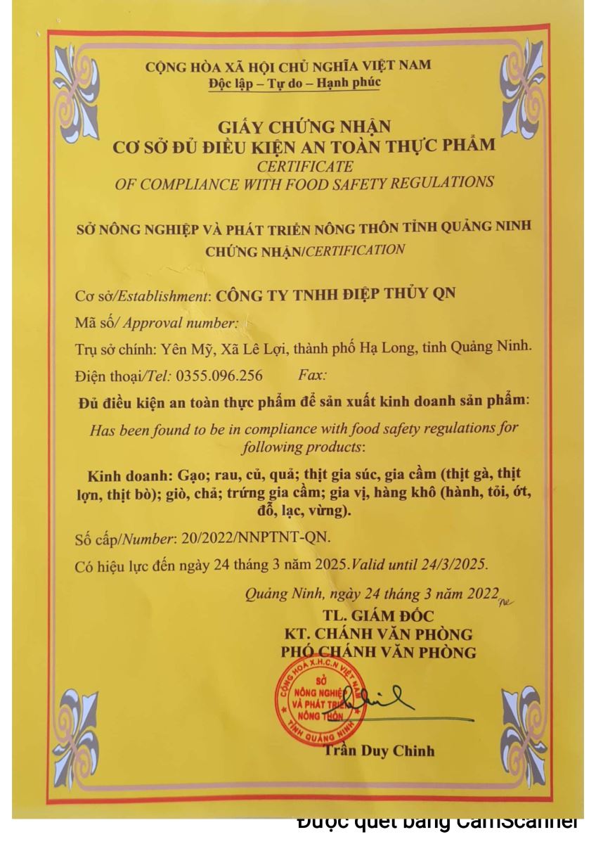 Tên đơn vị/nhà sản xuất: Công ty TNHH Điệp Thủy QN