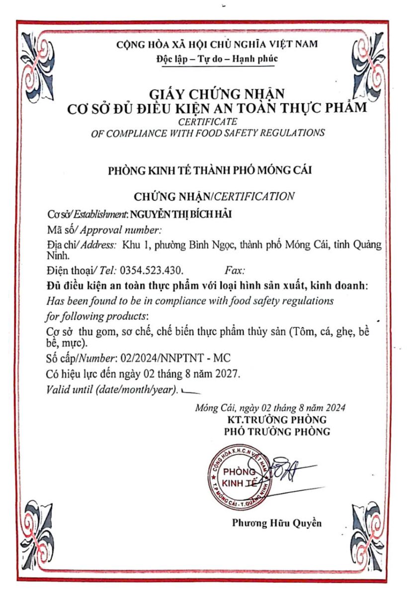 Tên đơn vị/nhà sản xuất: Cơ sở Nguyễn Thị Bích Hải