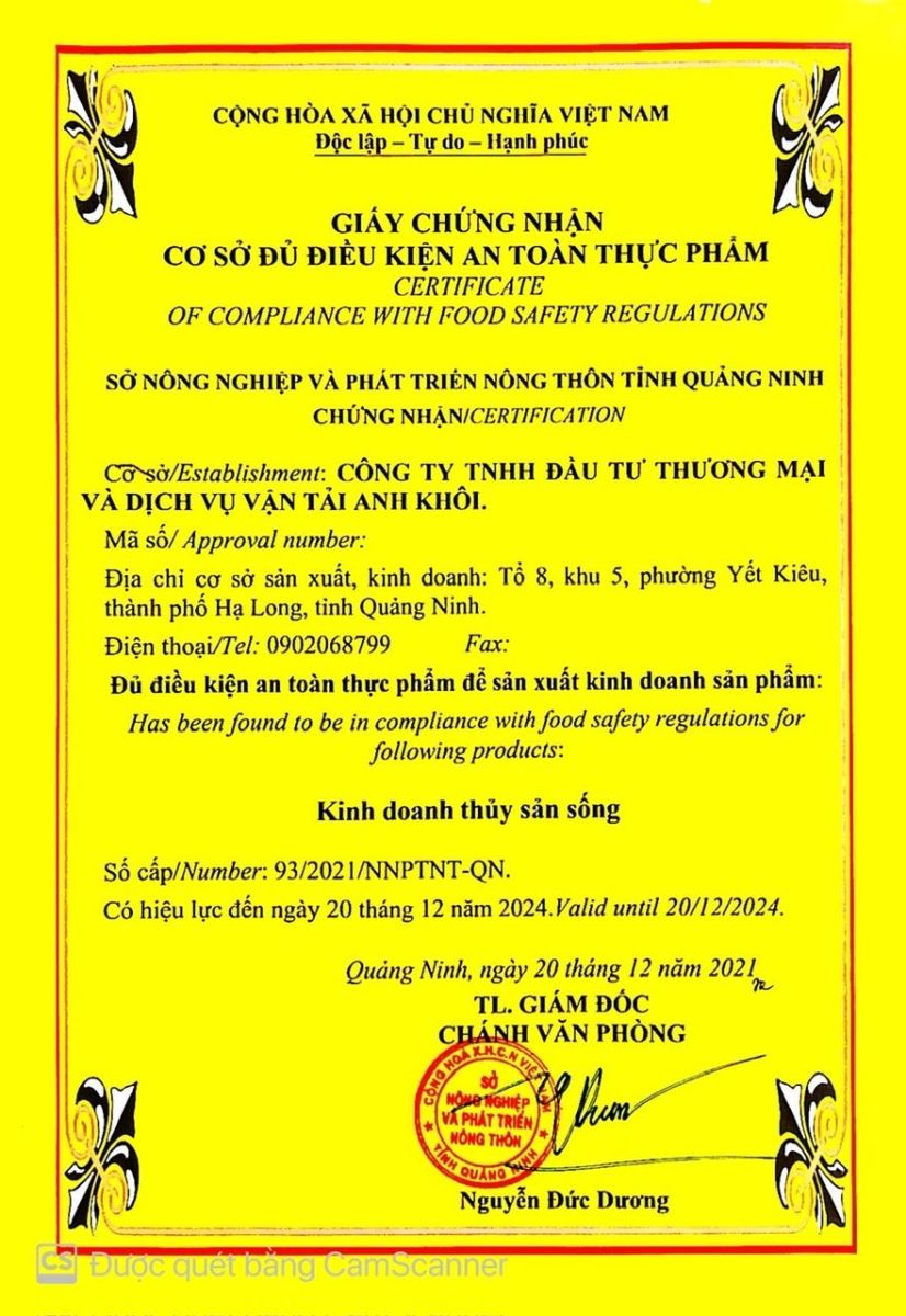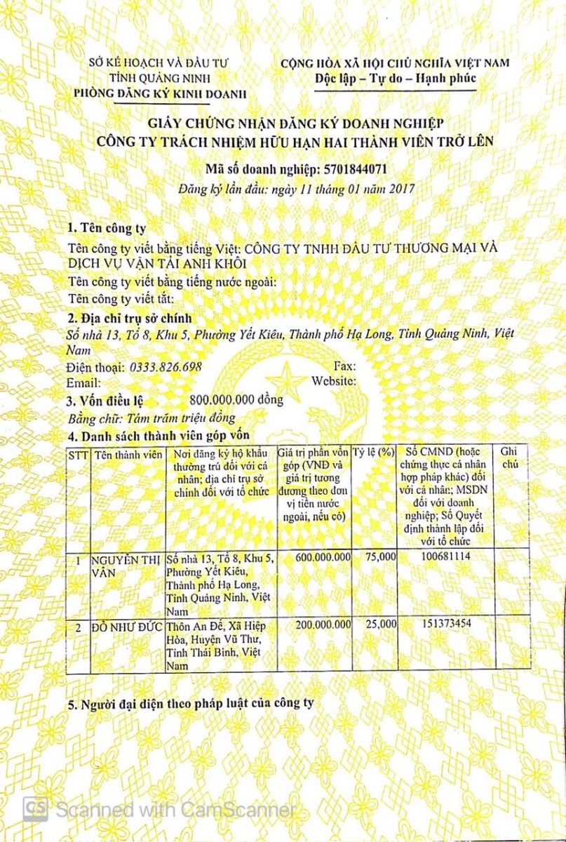 Tên đơn vị/nhà sản xuất: Công ty TNHh đầu tư thương mại và dịch vụ vận tải Anh Khôi