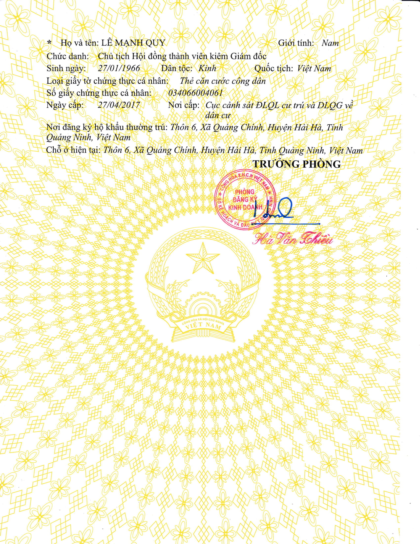 - Ông LÊ MẠNH QUY Tổng Giám Đốc Công ty Quy Hoa Trà, là người có công lưu giữ và phát triển vùng nguyên liệu Trà Hoa Vàng tại Hải Hà - Quảng Ninh. Ông cũng chính là chủ của thương hiệu Kim Hoa Trà nức tiếng tại Việt Nam với thương hiệu sản phẩm "Trà Hoa Vàng Quy Hoa" đạt chuẩn chất lượng OCOP 5 Sao cấp Quốc Gia năm 2022.