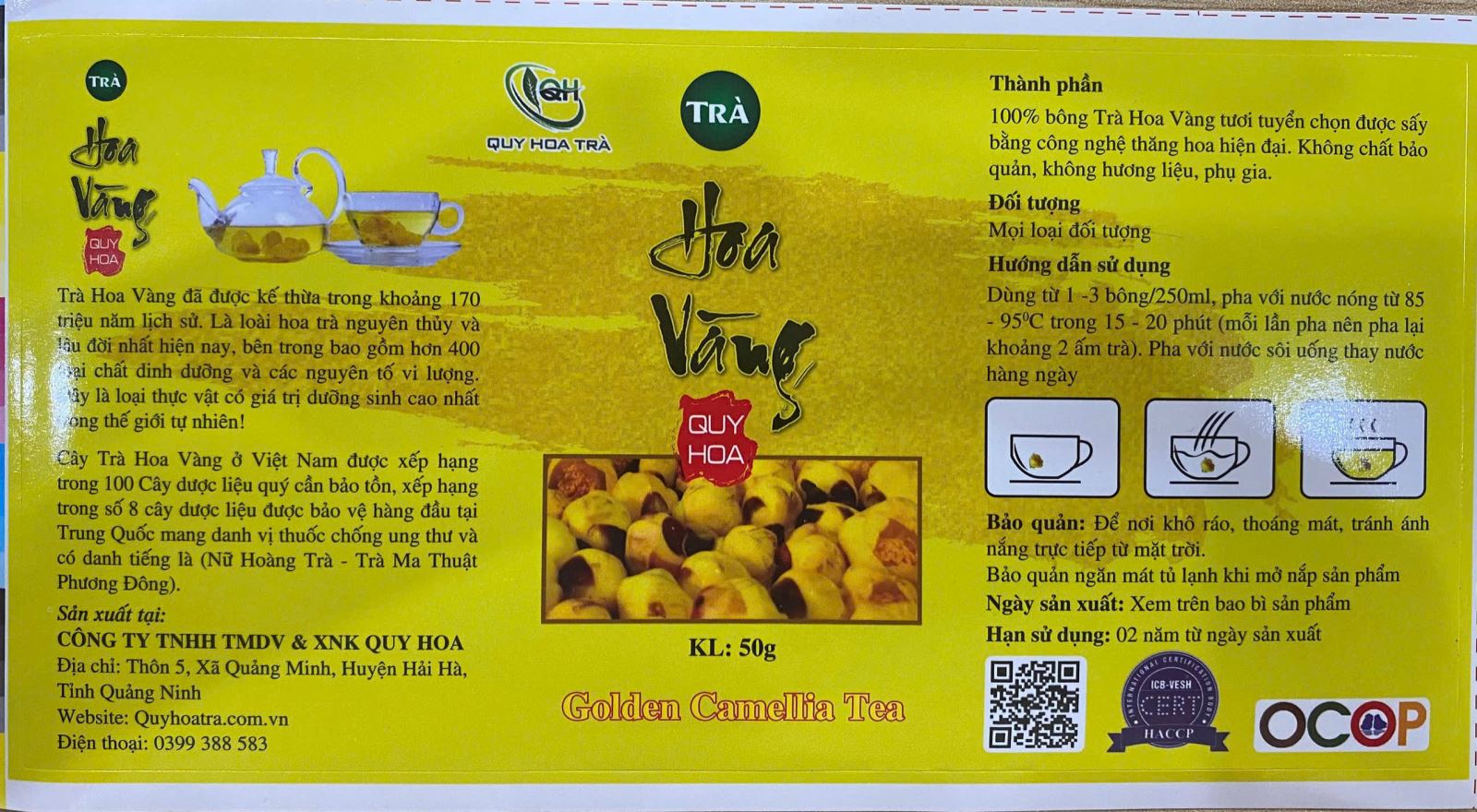 Trà Hoa Vàng Quy Hoa Quảng Ninh ( còn gọi: Quy Hoa Trà) nổi tiếng khắp nơi bởi nguồn gốc và chất lượng. Cây sinh trưởng khỏe, lá đều, hoa to hơn với đặc tính dược lý cũng nhiều hơn.