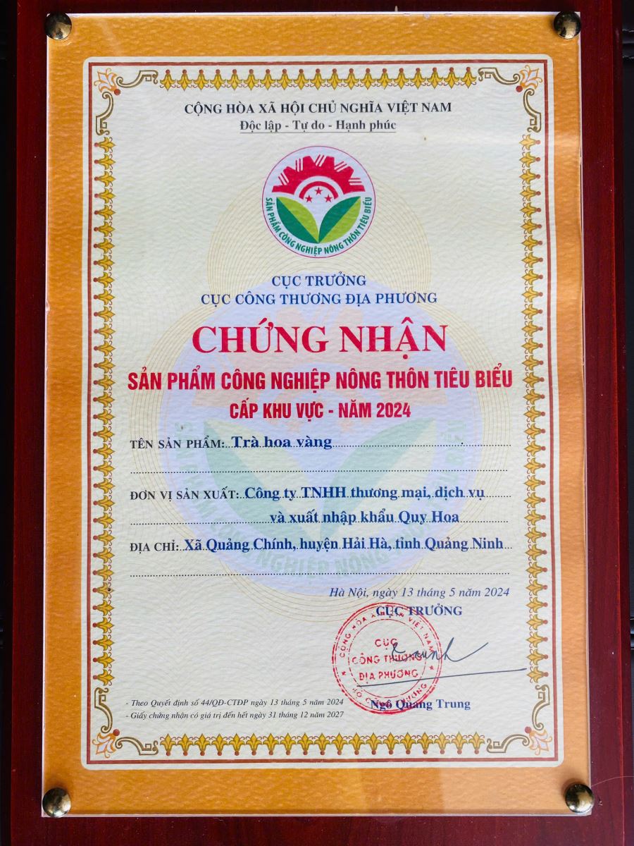 - Ông LÊ MẠNH QUY Tổng Giám Đốc Công ty Quy Hoa Trà, là người có công lưu giữ và phát triển vùng nguyên liệu Trà Hoa Vàng tại Hải Hà - Quảng Ninh. Ông cũng chính là chủ của thương hiệu Kim Hoa Trà nức tiếng tại Việt Nam với thương hiệu sản phẩm "Trà Hoa Vàng Quy Hoa"  đạt chuẩn chất lượng OCOP 5 Sao cấp Quốc Gia năm 2022.