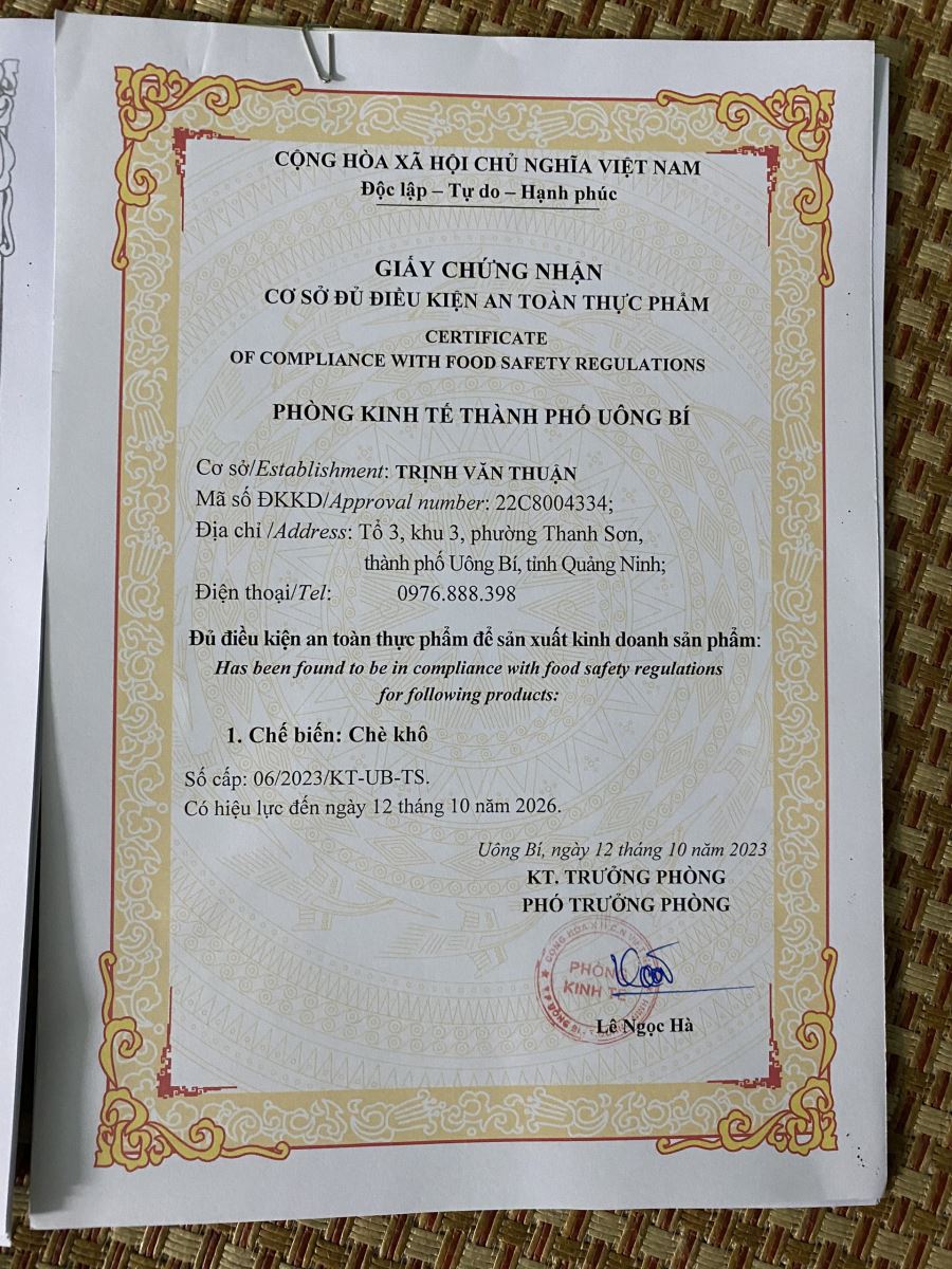 Tên đơn vị/nhà sản xuất: Cơ sở Trà Minh (Hộ kinh doanh Trịnh Văn Thuận)