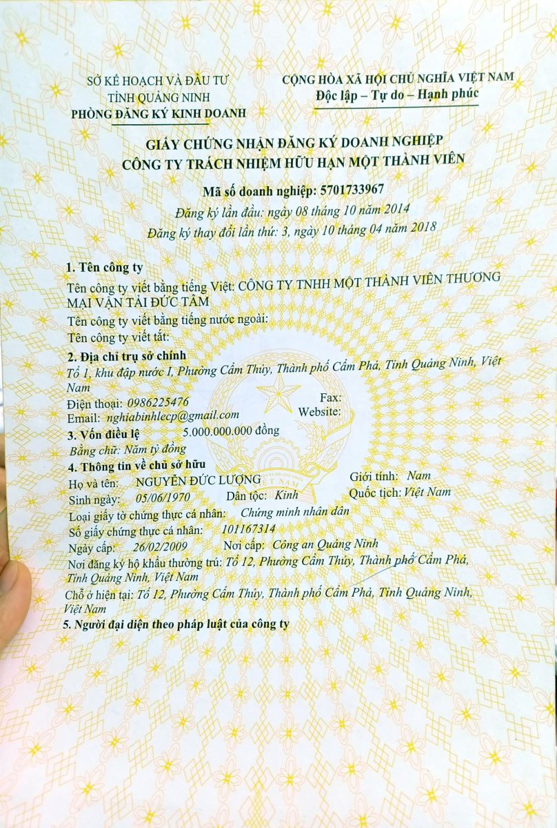 Tên đơn vị/nhà sản xuất: Công ty TNHH một thành viên thương mại vân tải Đức Tâm