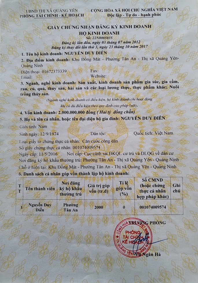 Địa chỉ: Khu Đồng Mát, phường Tân An, Thị xã Quảng Yên, tỉnh Quảng Ninh