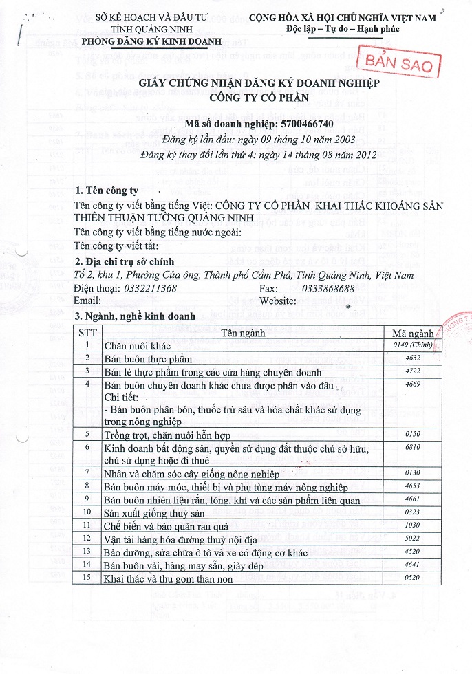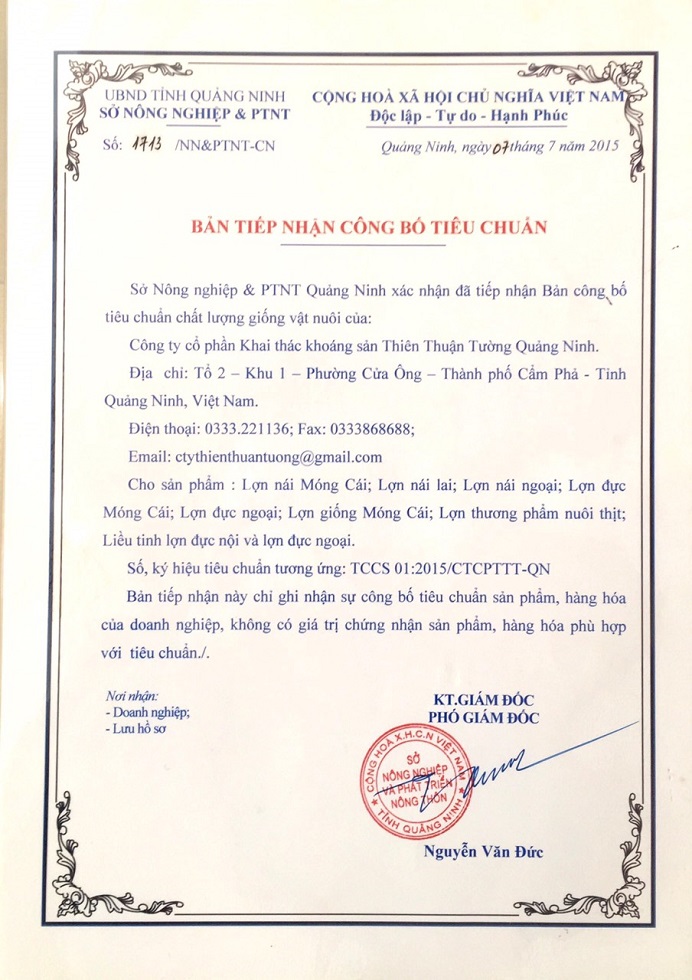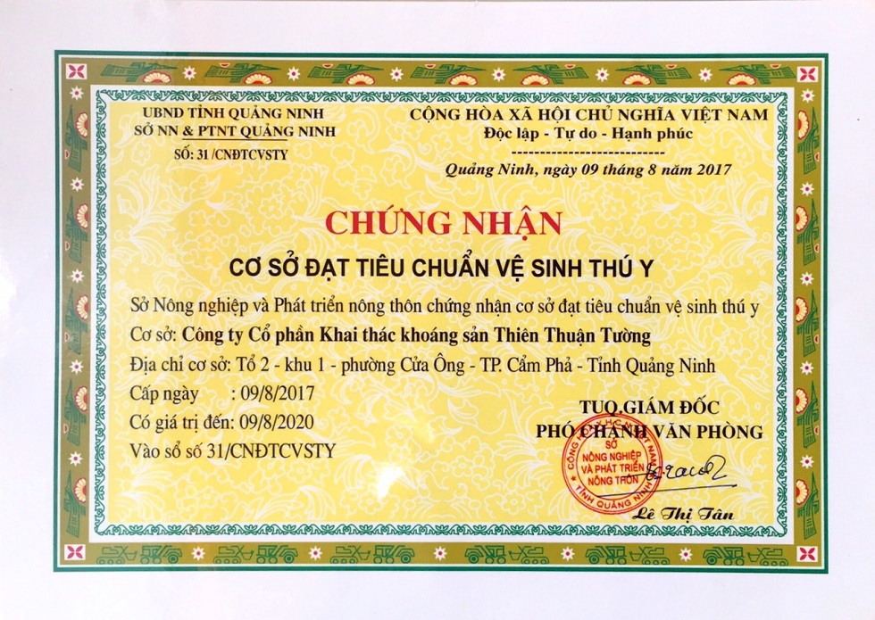 Tên đơn vị/nhà sản xuất: Công ty cổ phần khai thác khoáng sản Thiên Thuận Tường Quảng Ninh