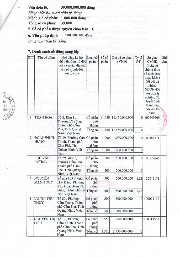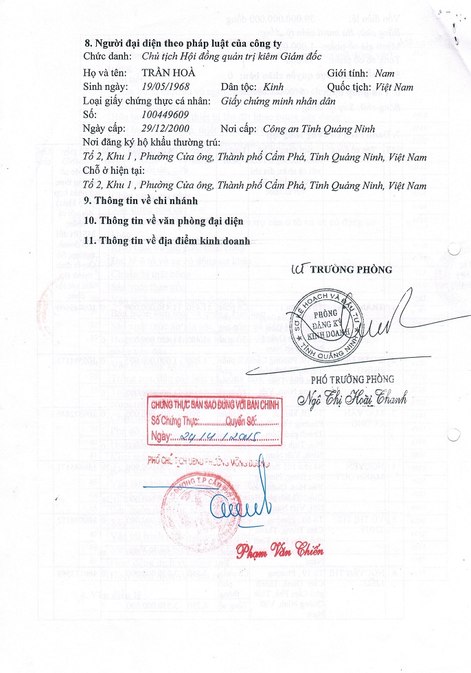 Địa chỉ: Tổ 2, Khu 1, Phường Cửa Ông, TP Cẩm Phả, Tỉnh Quảng Ninh