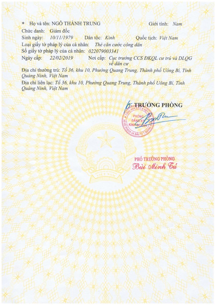 Địa chỉ: Số nhà 38, tổ 29, khu 8, phường Quang Trung, thành phố Uông Bí, tỉnh Quảng Ninh