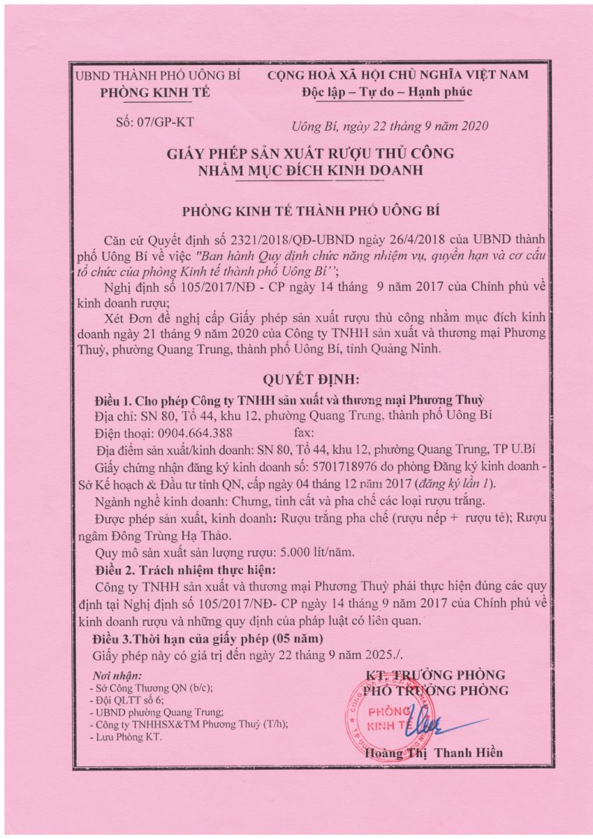 Tên đơn vị/nhà sản xuất: Công ty TNHH sản xuất và thương mại Phương Thùy