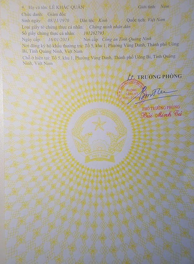 Địa chỉ: Tổ 5 khu 1, P Vàng Danh, Thành phố Uông Bí, tỉnh Quảng Ninh